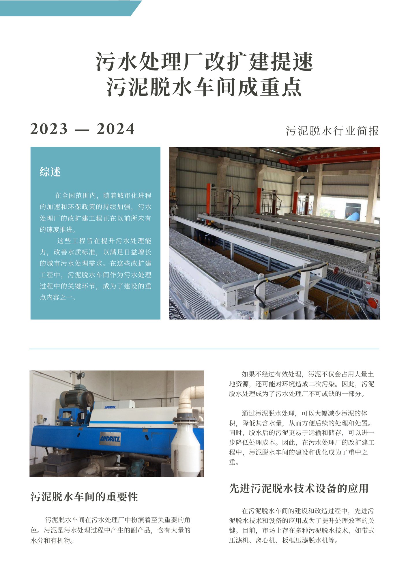 【行业动态】污水处理厂改扩建提速 污泥脱水车间成重点
